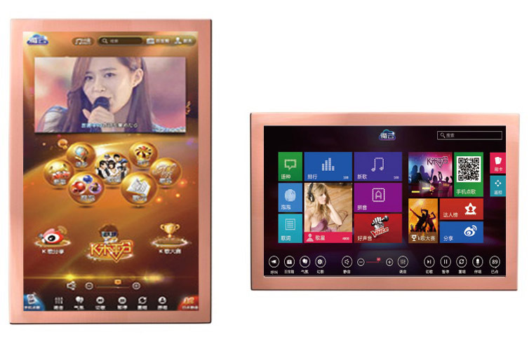 点歌台 与视易专业点播设备配套KTV点歌台均为红外屏、四防(防水、防尘、防暴、防刮)和触显一体设计,采用串口通信协议,规格多种多样——18.5寸、19寸、21.5寸、26寸、32寸等,颜色各异,设计独特,还有台式、立式、挂式等多种形式。集功能与外观优势于一体的点歌台,线路整洁、安装简便、运行稳定,可有效提高包厢档次。