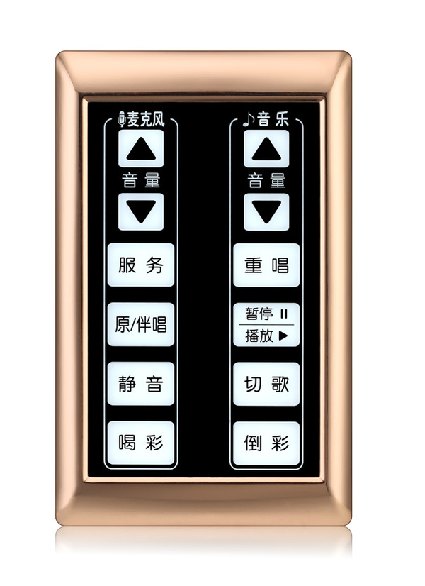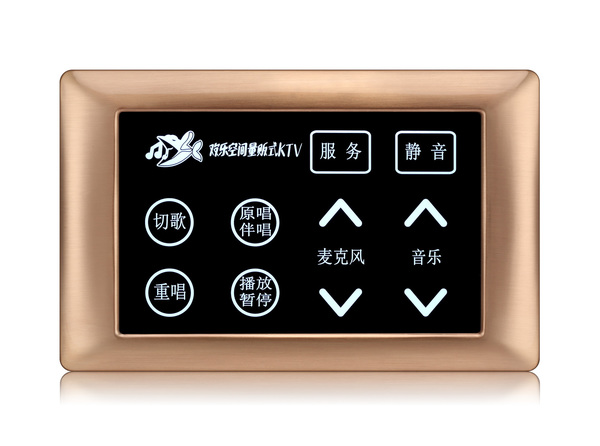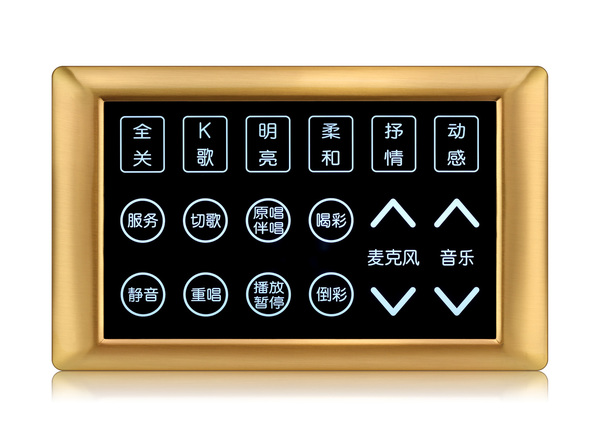 SY200 KTV中控墙板采用钢化玻璃面板、锌合金边框、电容式触摸按键,操作舒适,手感极佳,控制精准;采用86式底盒安装,施工方便;根据需求定制可实现呼叫服务、卡拉OK播放控制、灯光场景调节等。 |